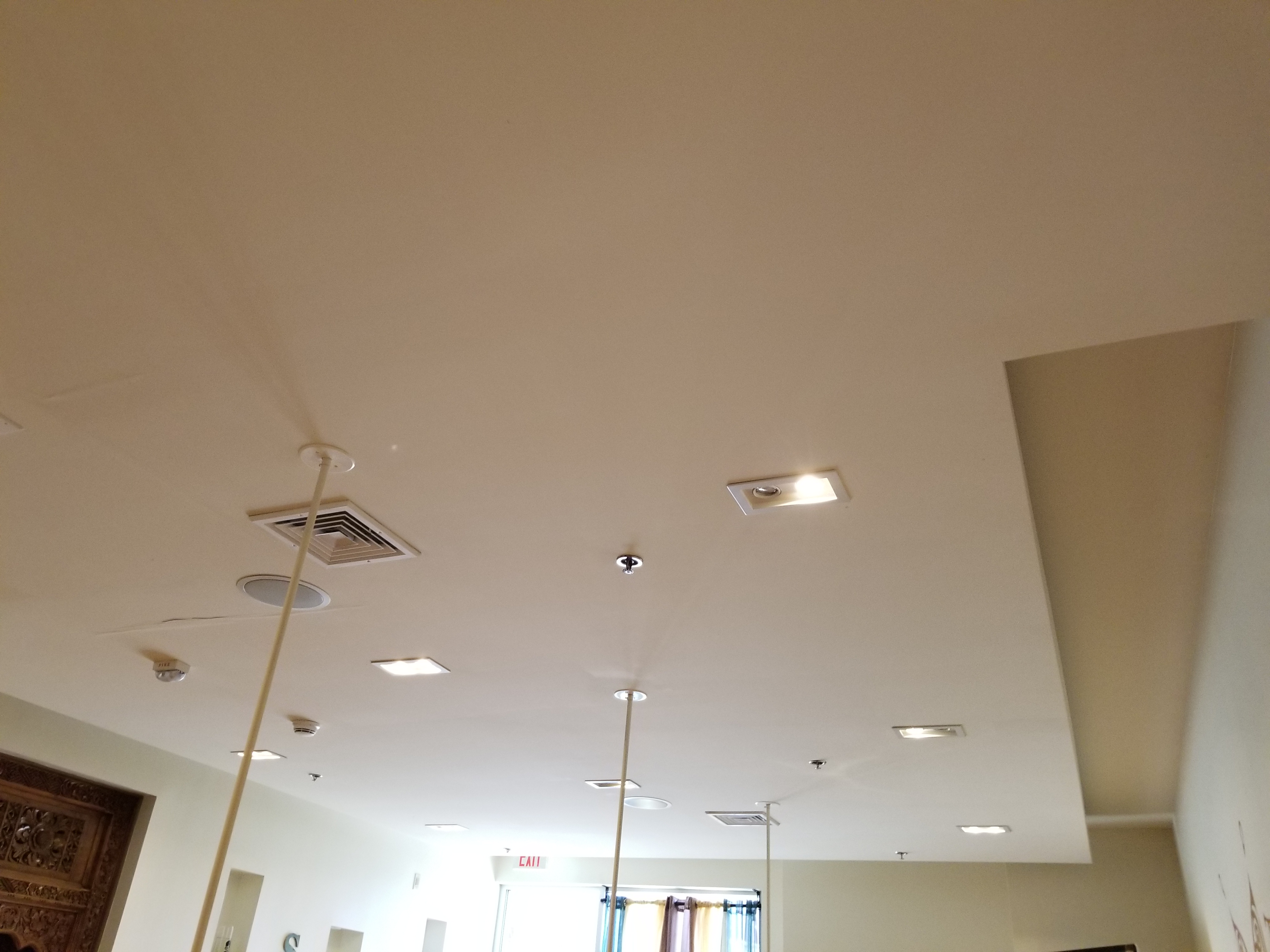 That aside always use a practical approach, because it will afford you an adequate install for the goal that you aim to achieve. In terms of lighting as shown in the pictures above, the customer went with style verses adequacy. Without a doubt, the rectangular shaped recessed lighting is very nice, and worked fine until, the ballast within the fixture went bad. Issue here is that there are no after market replacement parts for these lights and the dimensions for this fixture, puts the customer in the position to make a costly decision, to either purchase new lighting at cost, (11 fixtures@ $439/fixture) or go with a different fixture all together and pay a Carpenter to patch and paint the holes from the removal of the old fixtures, which will pose another issue, whereas the tenant of the establishment, will be out of work, for the duration of this project. Needless to say, but the rent paid may be a little short that month.